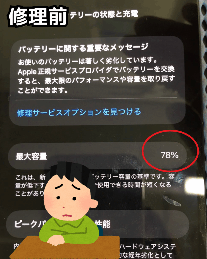新しい機種が続々と発売されていますが、まだ現役の端末は使って行きたいですよね。 今回のご依頼はiPhone12のバッテリー交換でした。交換は今回が初めてとのことです。 最大容量を確認させていただくと78%でした。これは減 …投稿日:2025-11-26