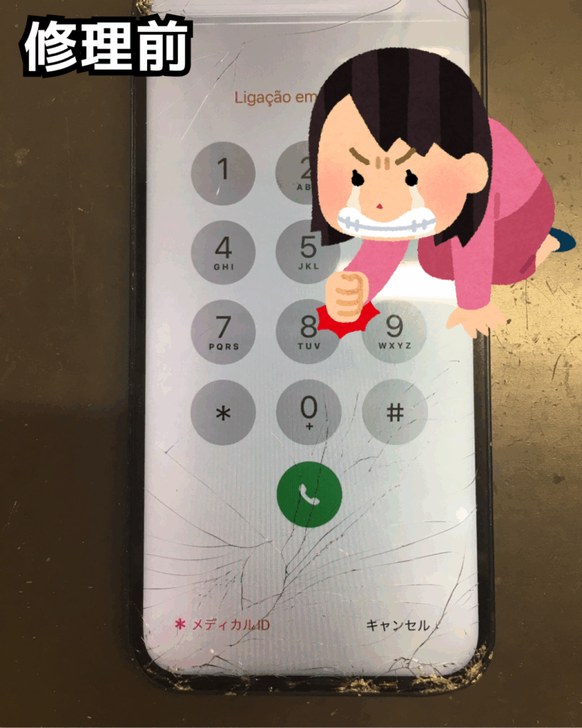 朝になったらスマホが手から落ちて画面が割れてた!!!